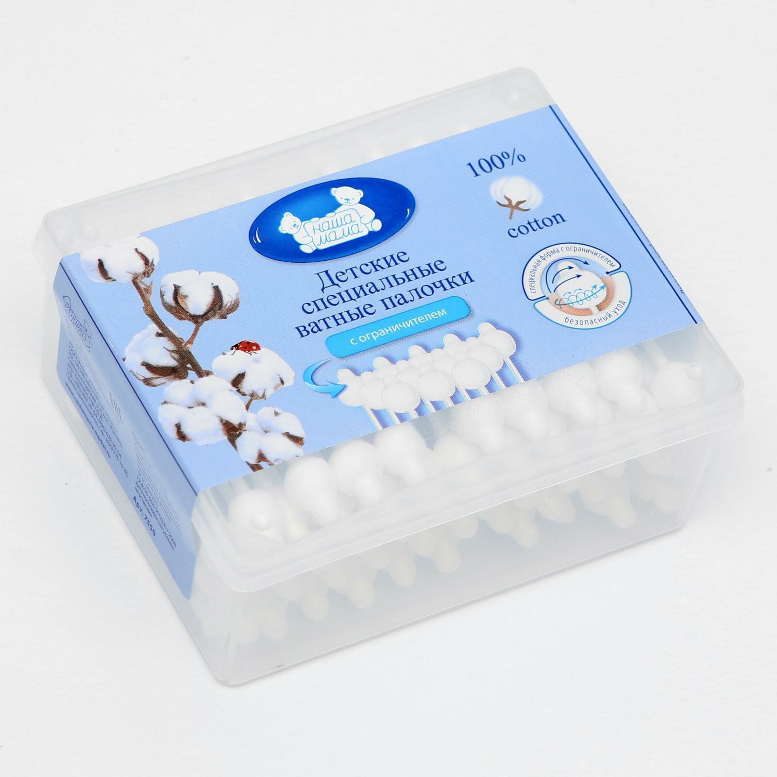 Детские специальные Ватные палочки "Наша мама", с ограничителем, 50 шт 1528487