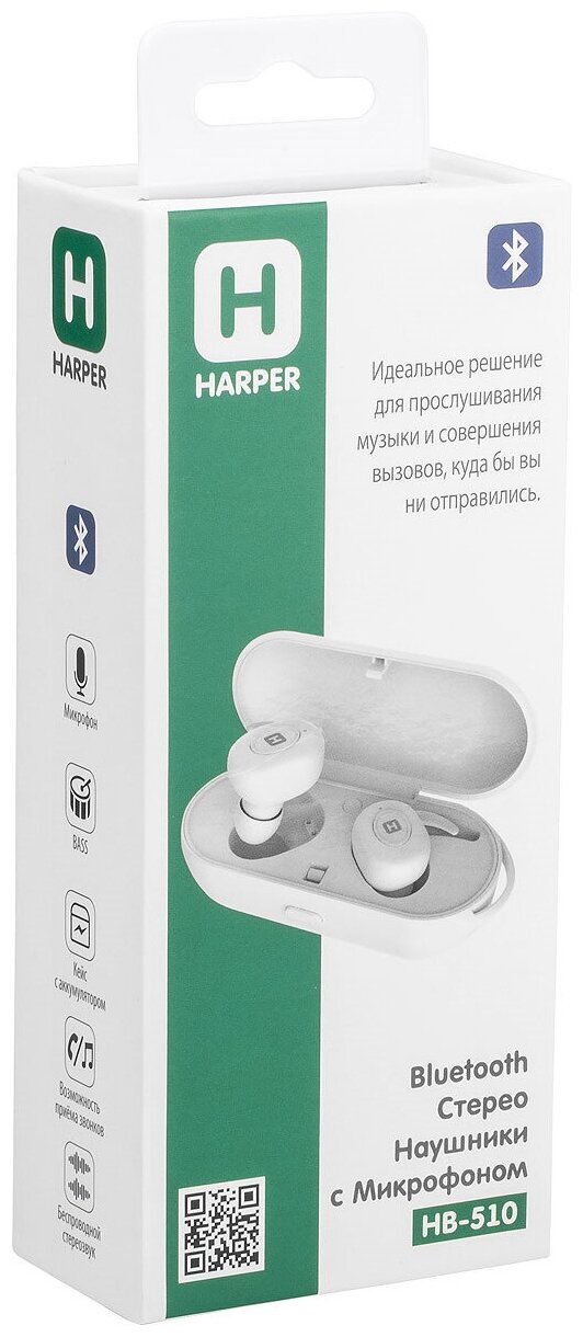 Гарнитура HARPER HB-510 TWS, Bluetooth, вкладыши, белый [h00002182]