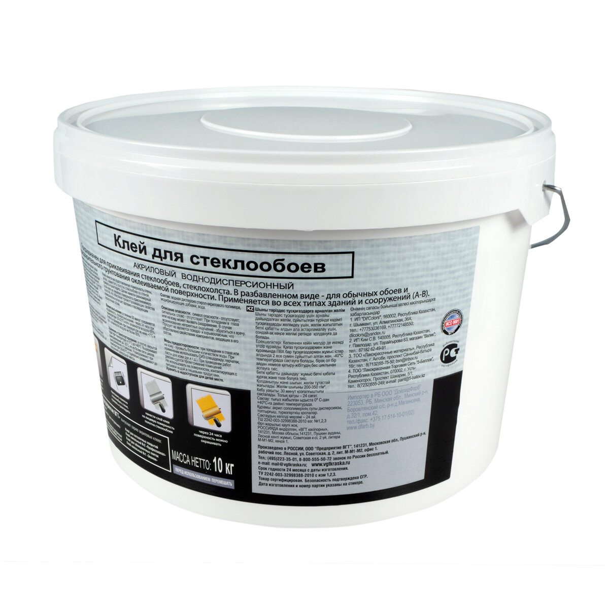 ВГТ клей акриловый для стеклообоев (10кг) / VGT клей акриловый для стеклообоев готовый к применению (10кг)
