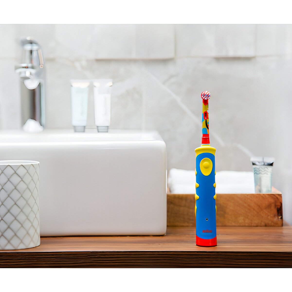 Электрическая зубная щетка Oral-B Pro 500 + Kids D10.513K, белый/голубой/желтый