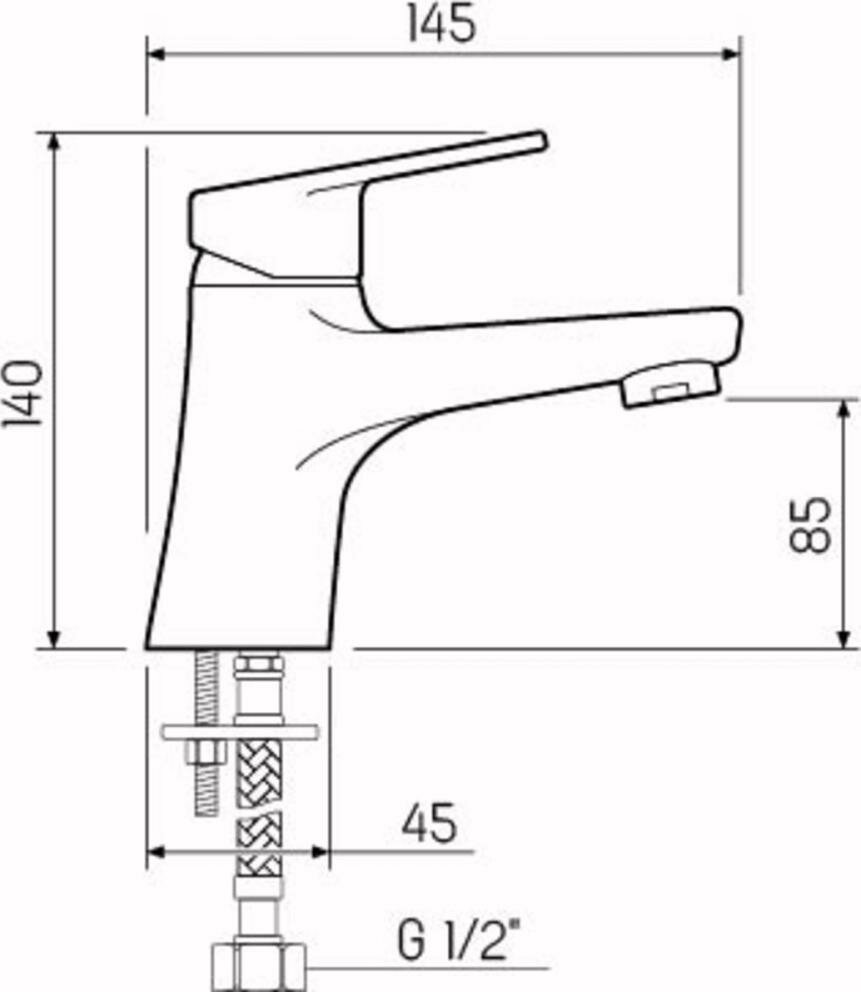Смеситель для умывальника, РМС SL132-001F, монолитный излив, однорычажный, с гибкой подводкой
