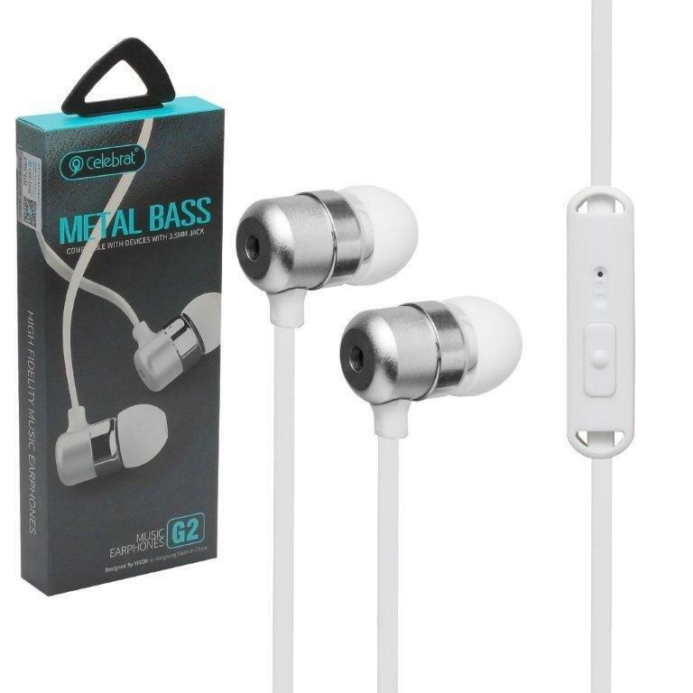 Наушники внутриканальные с микрофоном Celebrat G2 , белый 3.5mm Audio Pin, 1,2m