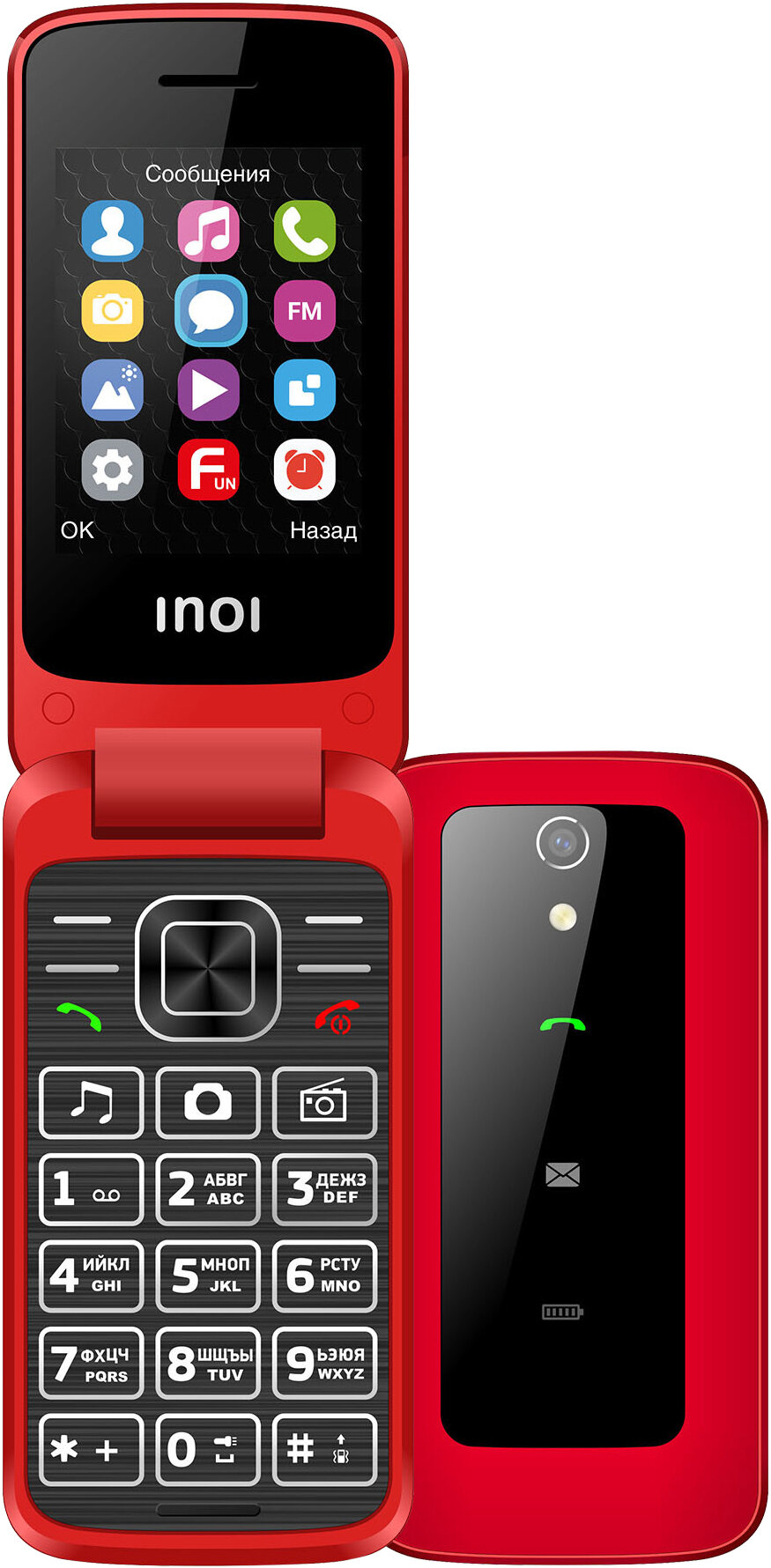 Сотовый телефон INOI 245R красный (2*SIM, 2,4", 320х240, 800 мАч, micro SD до 16 Гб, 1,3Мп, FM, BT)