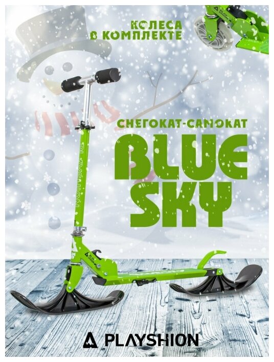 Самокат-снегокат PLAYSHION BLUESKY, зеленый