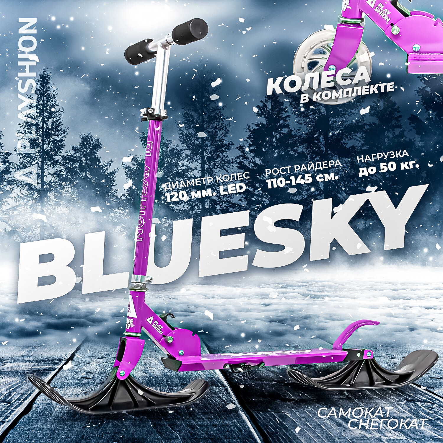 Самокат-снегокат PLAYSHION BLUESKY, фиолетовый