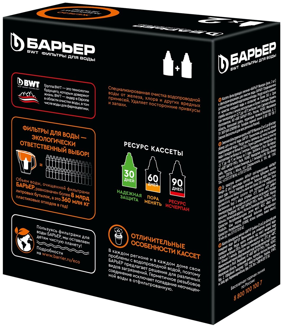 Комплект кассет для фильтров-кувшинов барьер Железо, 2 шт, задерживает металлы, защищает от ржавчины