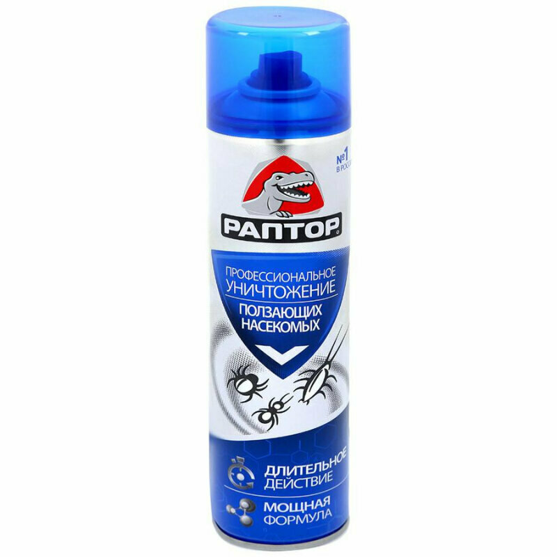 Аэрозоль от ползающих насекомых (от тараканов, муравьев, клопов, блох, пауков, чешуйниц), Раптор, 350 мл