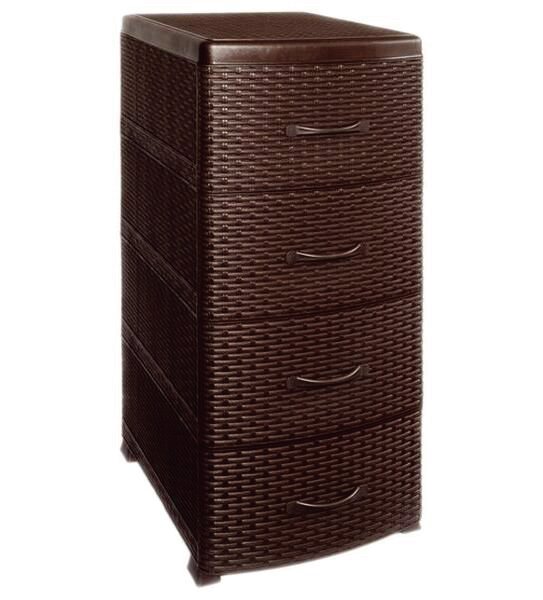 Комод Полимербыт Ротанг, коричневый, 4 ящика