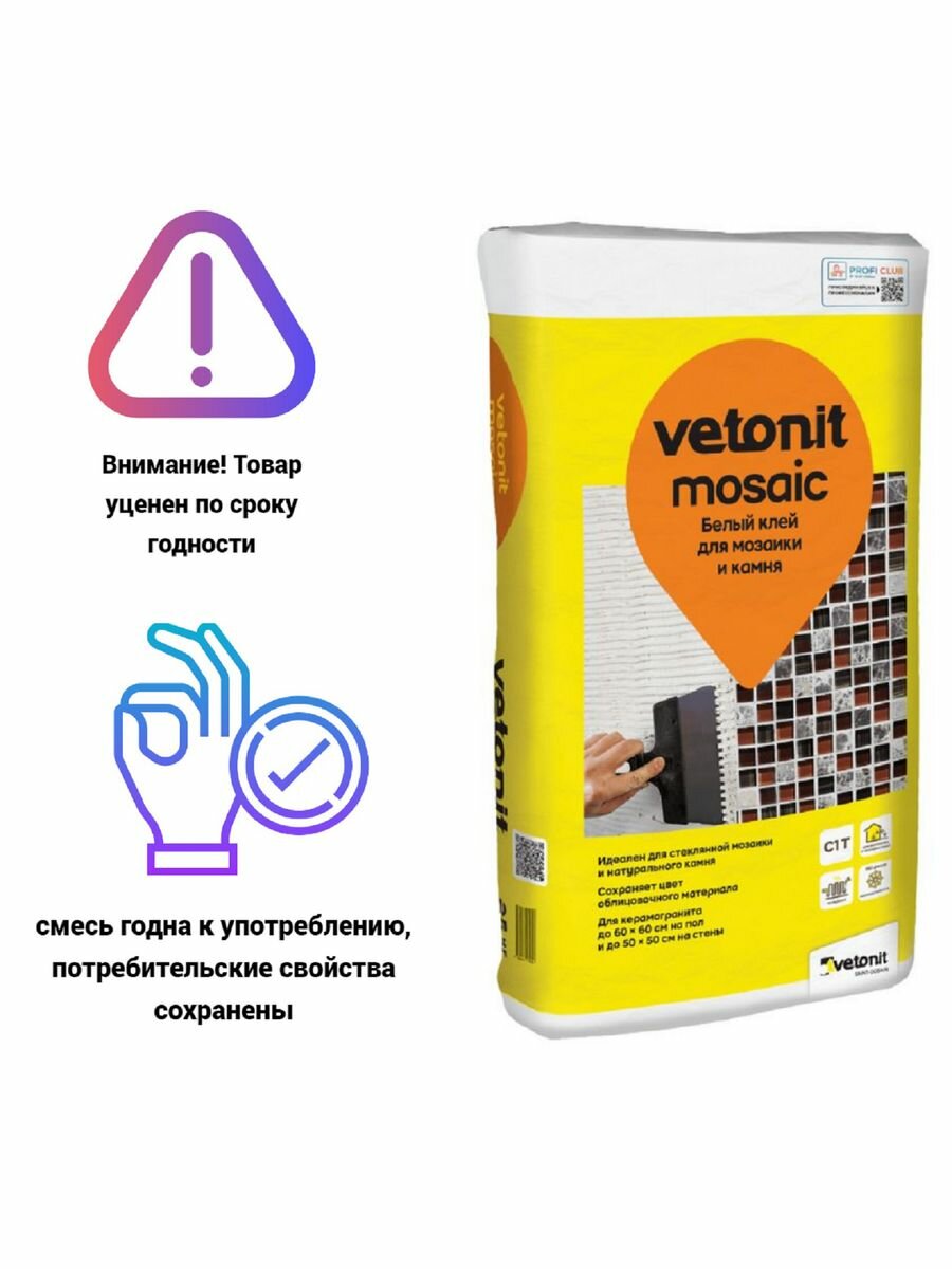 Уценка Vetonit Mosaic 25 кг Белый клей для мозайки и камня