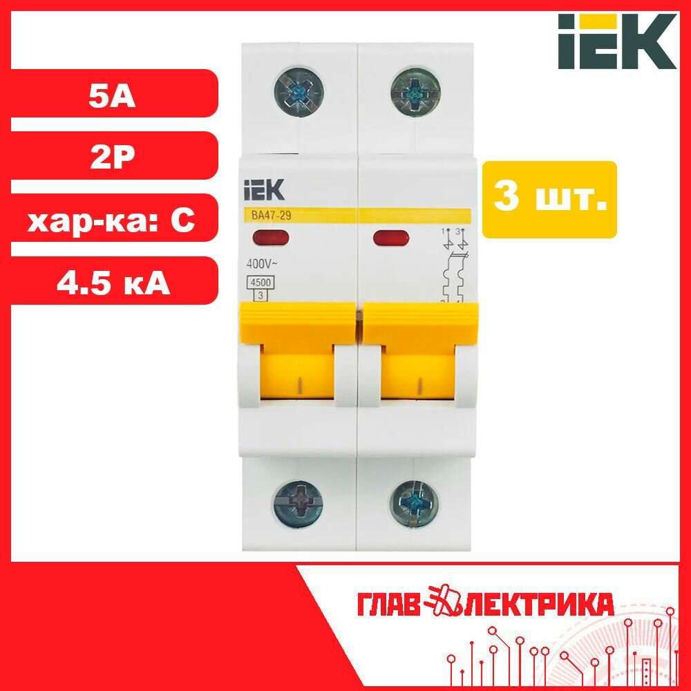 Купить Выключатель автоматический модульный 2п C 5А 4.5кА ВА47-29 IEK MVA20-2-005-C