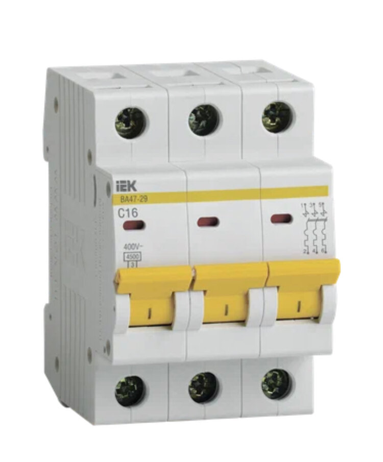 Автоматический выключатель ВА47-29 тип С 4,5кА 3п 16А IEK автомат трехфазный 16а