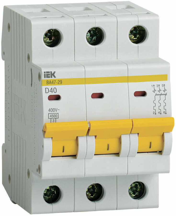 Выключатель автоматический 40А 3П трехполюсный характеристика D 4,5кА ВА47-29 MVA20-3-040-D IEK