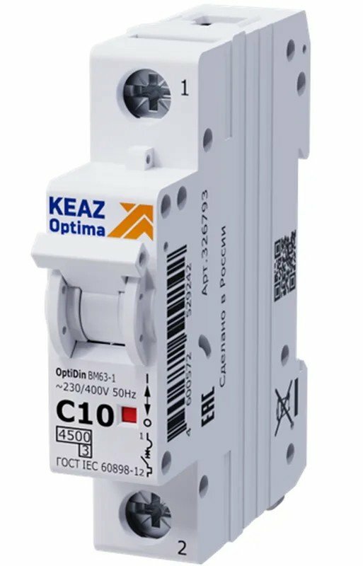 Выключатель автоматический модульный 1п C 10А 6кА OptiDin BM63-1C10-УХЛ3 КЭАЗ 260501 (1 шт.)