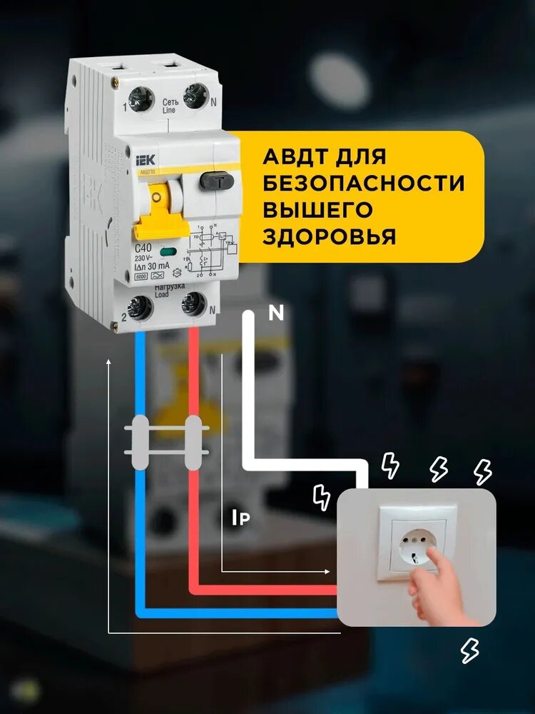 Дифференциальный автомат ДИФ АВДТ-32 тип А/С 6кА 30мА 1П+Н 40А IEK