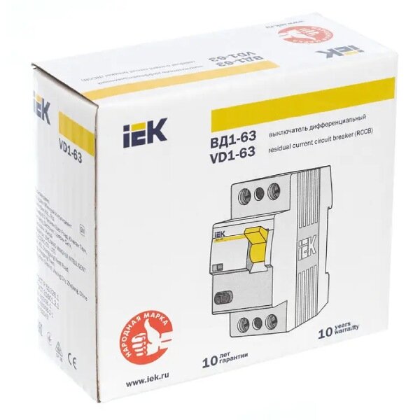 IEK Выключатель дифференциальный ВД1-63 (УЗО) 2Р 16А 10мА