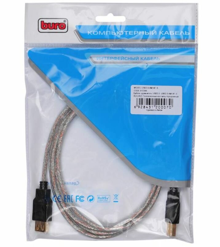 Удлинитель Buro USB - USB (USB2.0-AM-AF-S), прозрачный