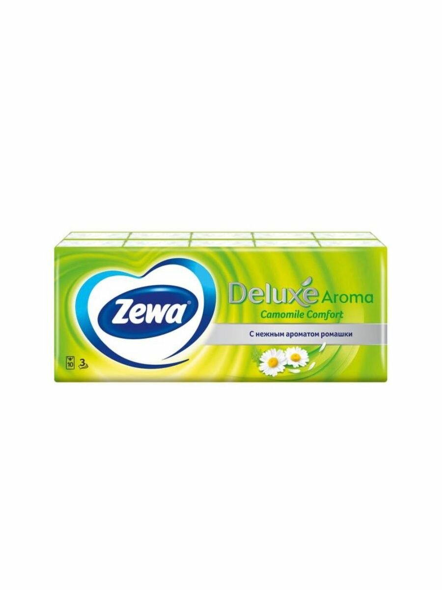 Zewa Платочки бумажные носовые Deluxe Aroma Ромашка, 3-х слойные, 10 шт в уп. /