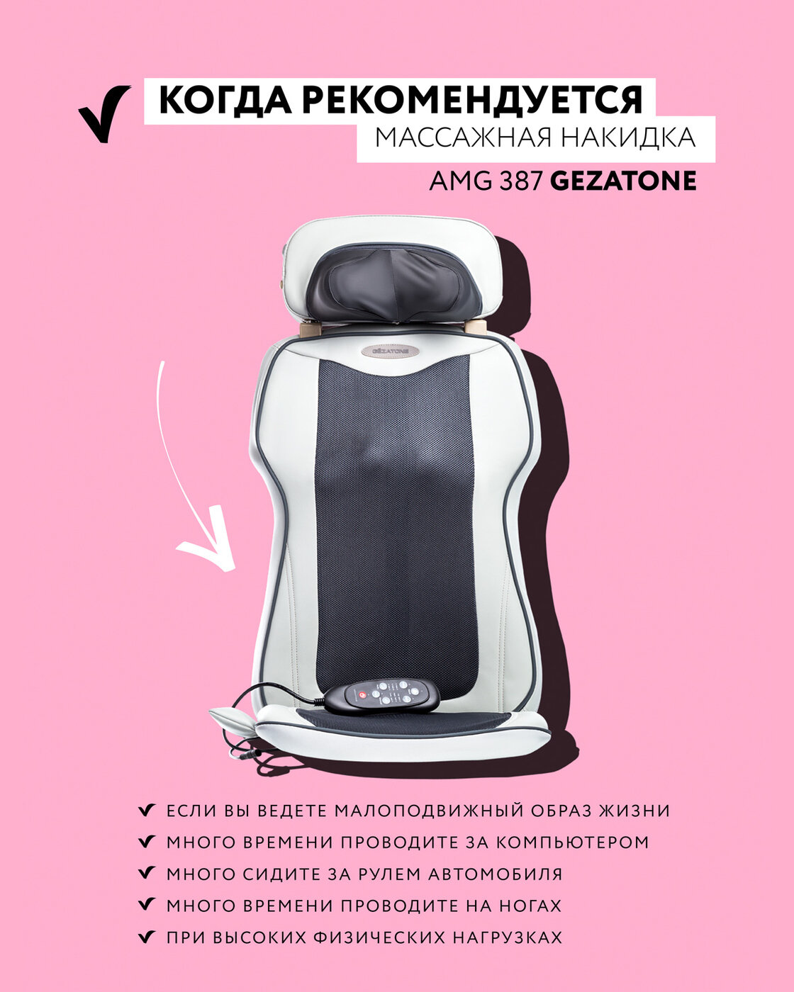 AMG387 Массажная накидка "3D Pad" Gezatone интересное:
