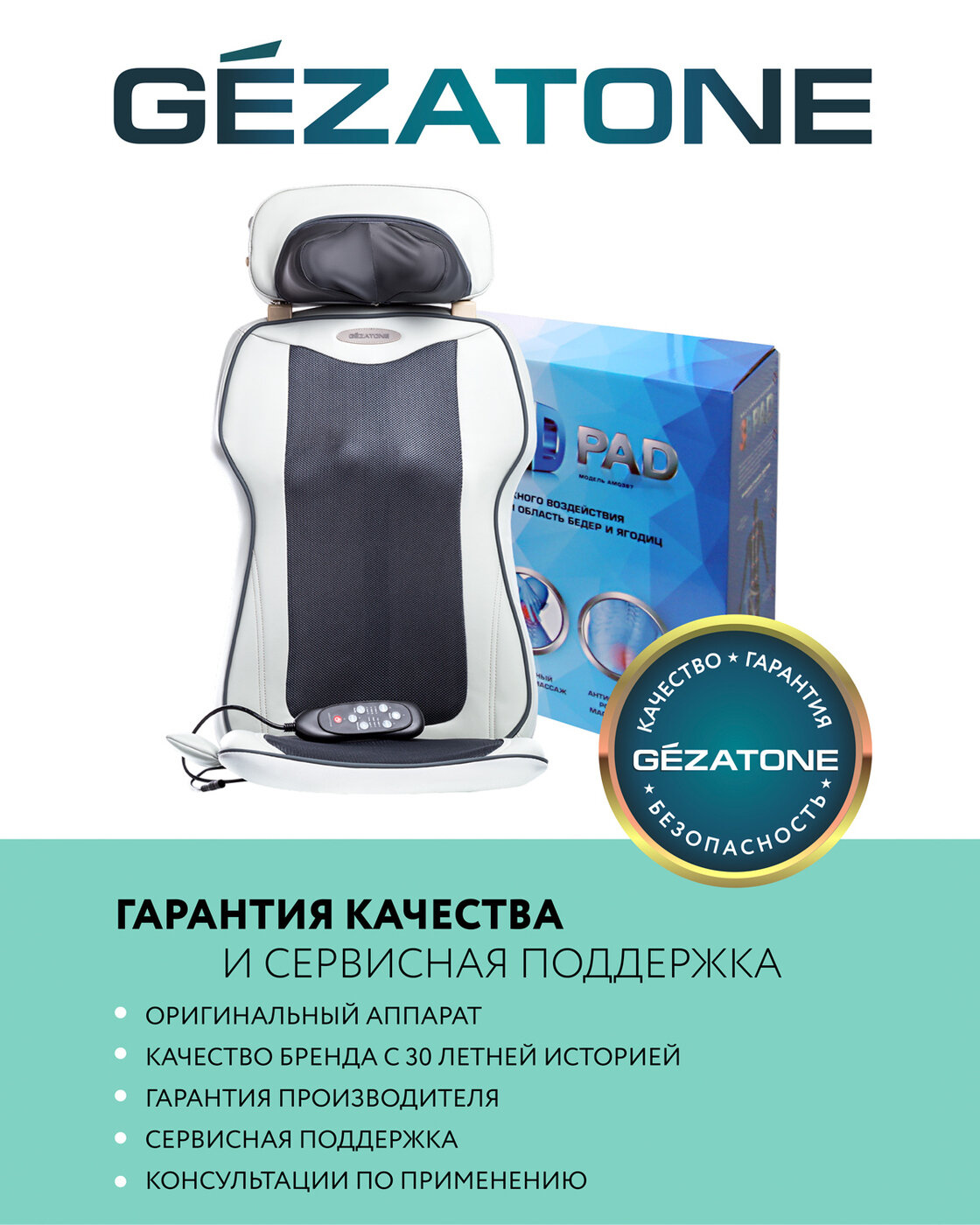 Массажная накидка на сиденье Gezatone "3D Pad" AMG387 .