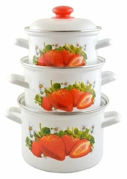 Ниже Вы можете прочитать отзывы на Набор кастрюль "Лысьвенские эмали" "Сочная клубника" эмалированная сталь 1,5л.; 2л.; 3л., ознакомится с подробными характеристиками, посмотреть интересные обзоры и фотографии на Набор кастрюль "Лысьвенские эмали" "Сочная клубника" эмалированная сталь 1,5л.; 2л.; 3л..