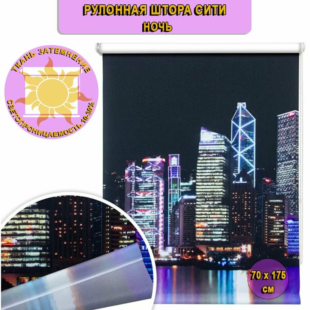 Рулонная штора УЮТ 70 см высота 175 см, Сити ночь, рольштора полиэстер, затемнение 70%