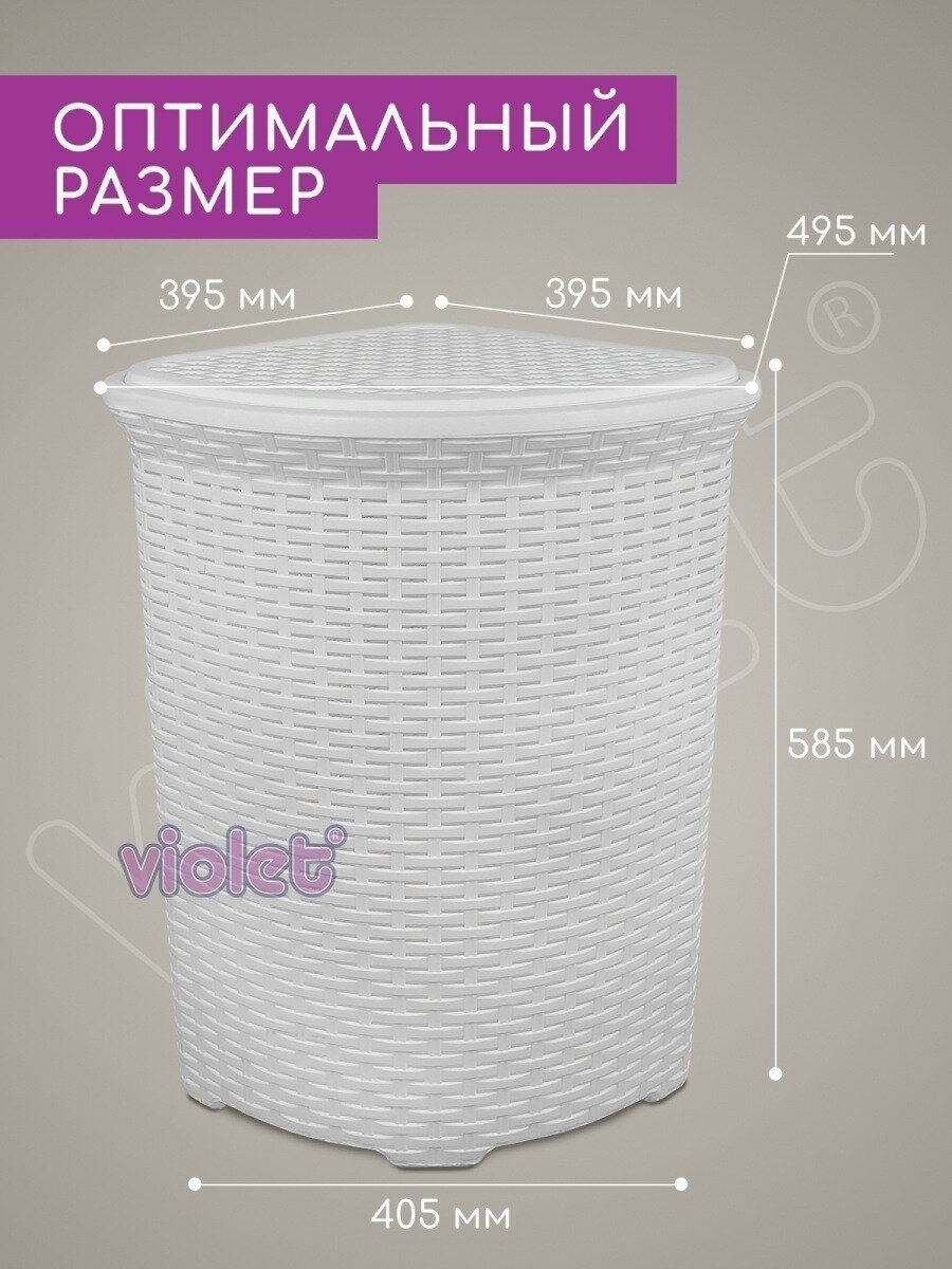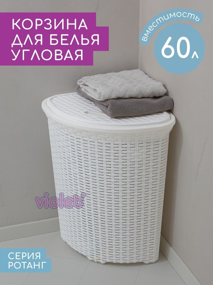 Корзина для белья Violet Ротанг 60 л угловая белый 235006 .