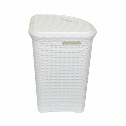 Корзина для белья угловая с крышкой 60л Ротанг (белая)