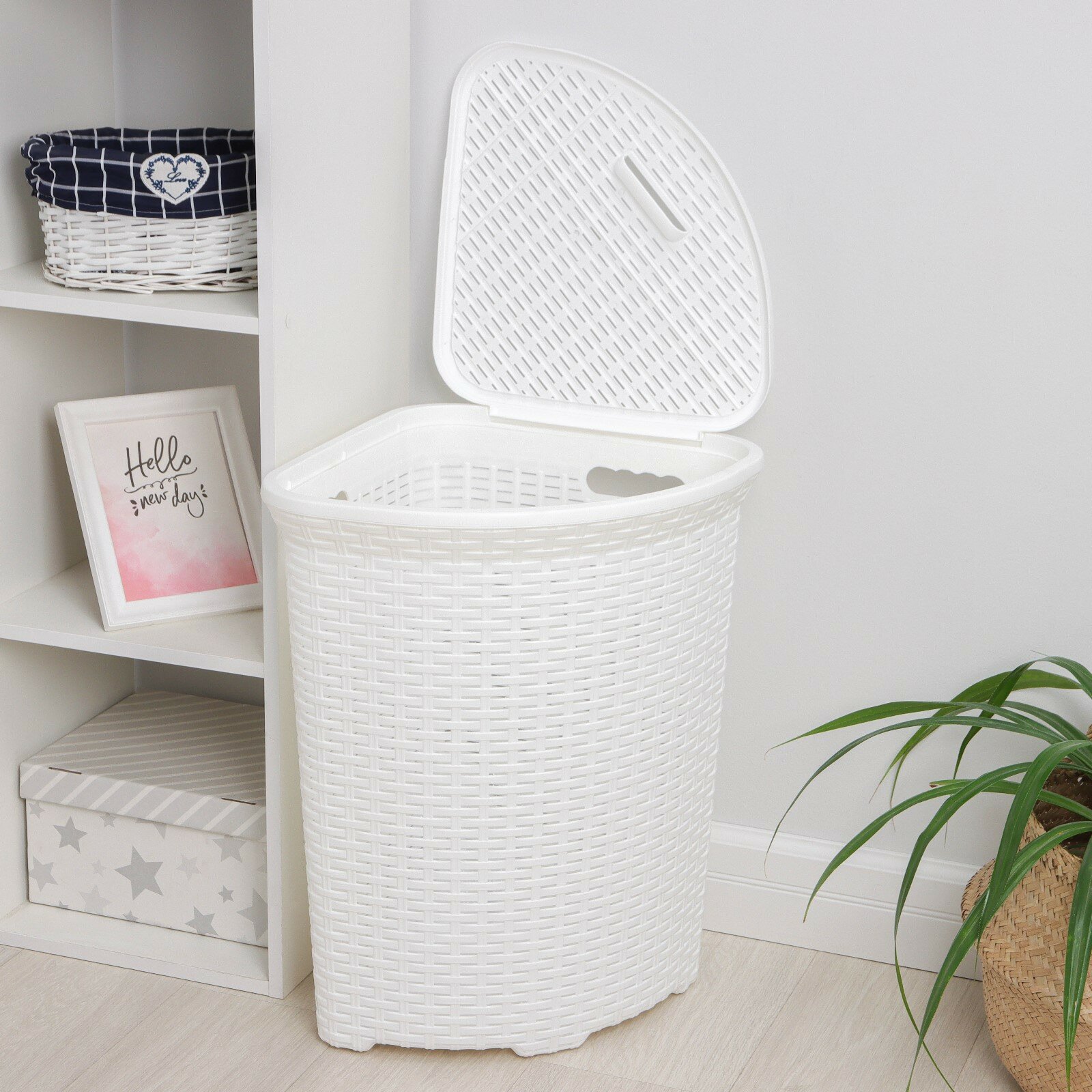 Угловая корзина для белья с крышкой 235006 ротанг белый 60 л