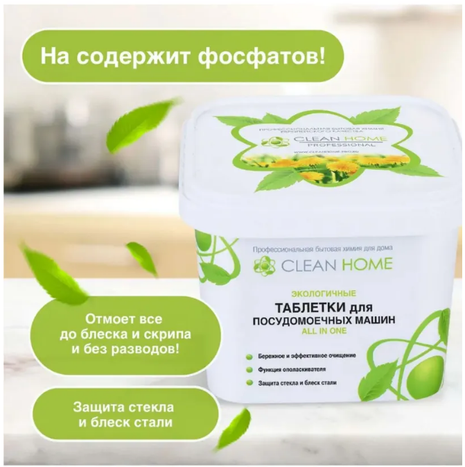 Таблетки для посудомоечных машин Clean home All In One, экологичные, бесфосфатные, 30 шт (4606531205523)