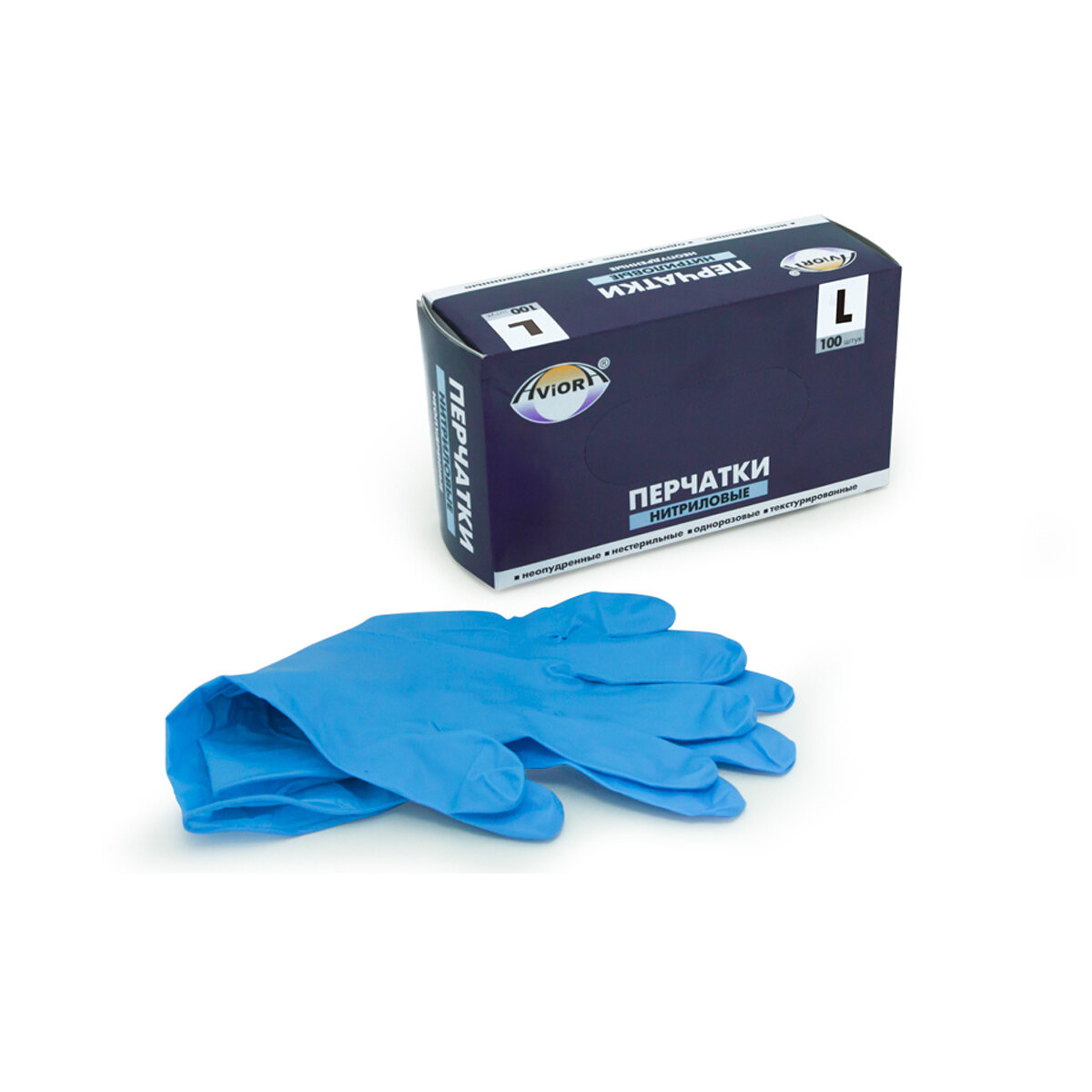 Перчатки нитриловые, голубые, 4 гр., разимер L, 100 шт. в упаковке, AVIORA (402-659)