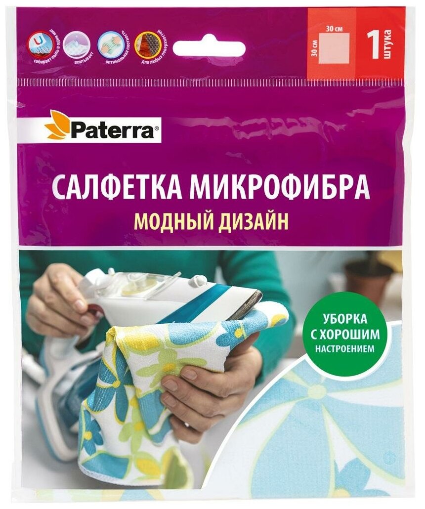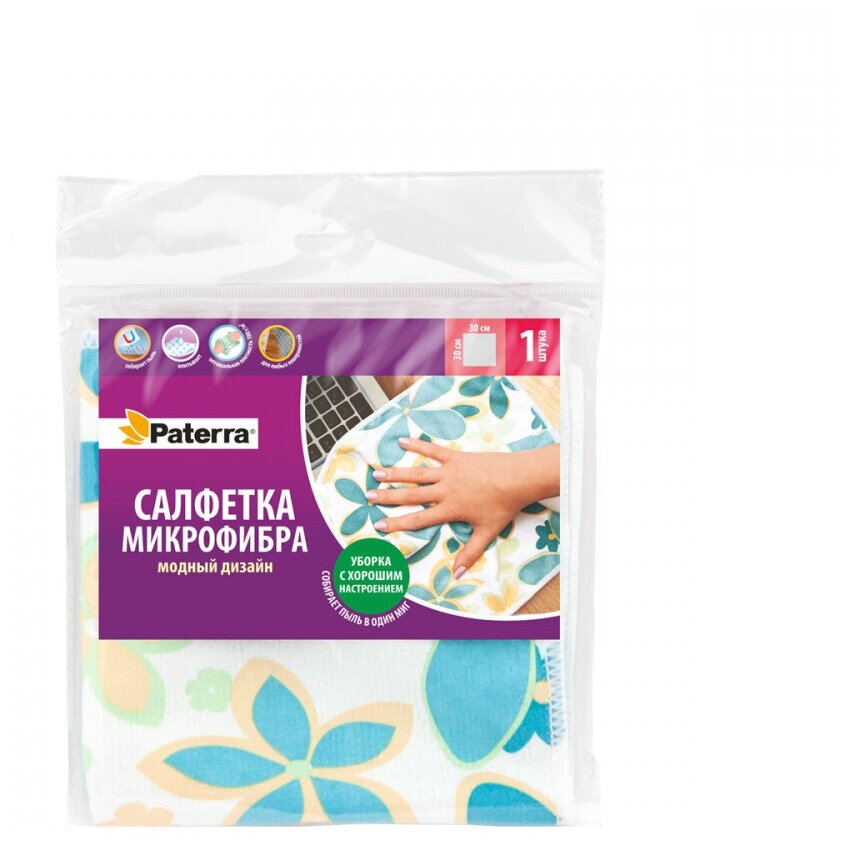 PATERRA Салфетка Микрофибра модный дизайн 30 х 30 см в пакете 406-014