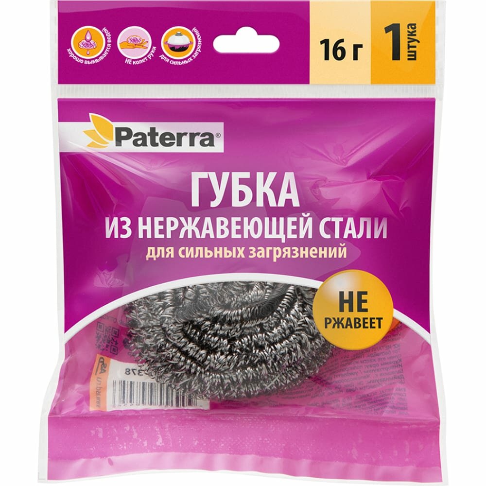 Губка для посуды металлическая спираль 16ГР PATERRA