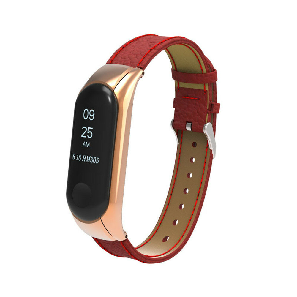 Ремешок для фитнес браслета Xiaomi Mi Band 3 Кожаный (красный)