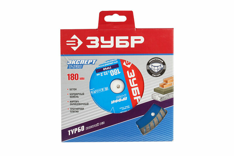 Т-730 Турбо 180 мм, диск алмазный отрезной по бетону, кирпичу, граниту, Зубр Профессионал .