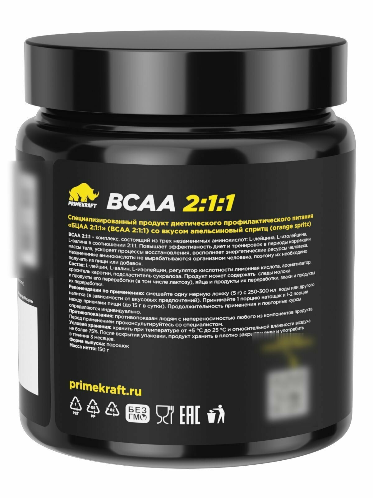 Bcaa 2:1:1 Prime Kraft 150 г (Без вкуса)