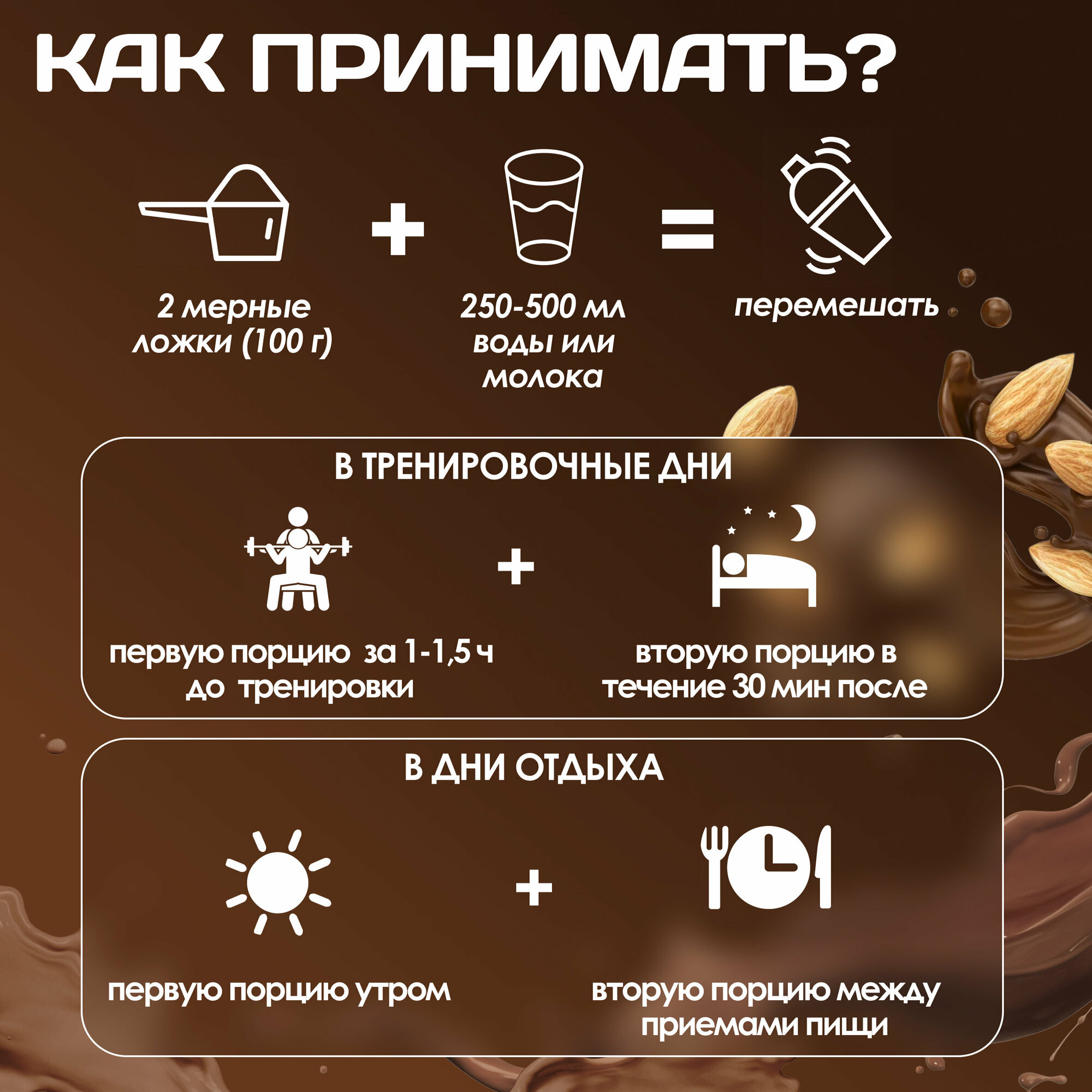 | Отзыв: | Брала шоколад-орех. Растворяется хорошо, вкус приятный. Разводила 50/50 молоко/вода, получился вкусный молочный коктейль. По качеству и целевому результату пока сказать ничего не могу, общее впечатление очень хорошее. Ванильный протеин ON отошел на второй план, по вкусовым качествам точно, хотя считается одним из лучших. За такую цену просто сказка, а не гейнер. Кстати, есть мерный савочек. |