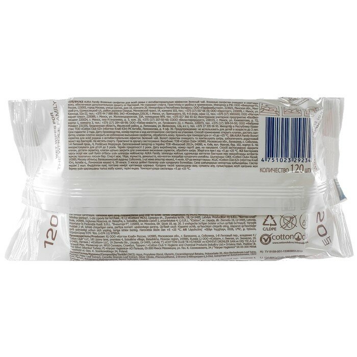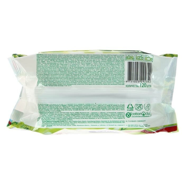 Влажные салфетки AURA FAMILY, для всей семьи, с антибактериальным эффектом 120 шт интересное: