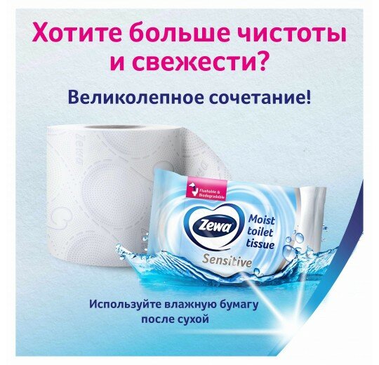 - Тулатеная бумага Zewa Delux белая 3 слоя 8 шт
