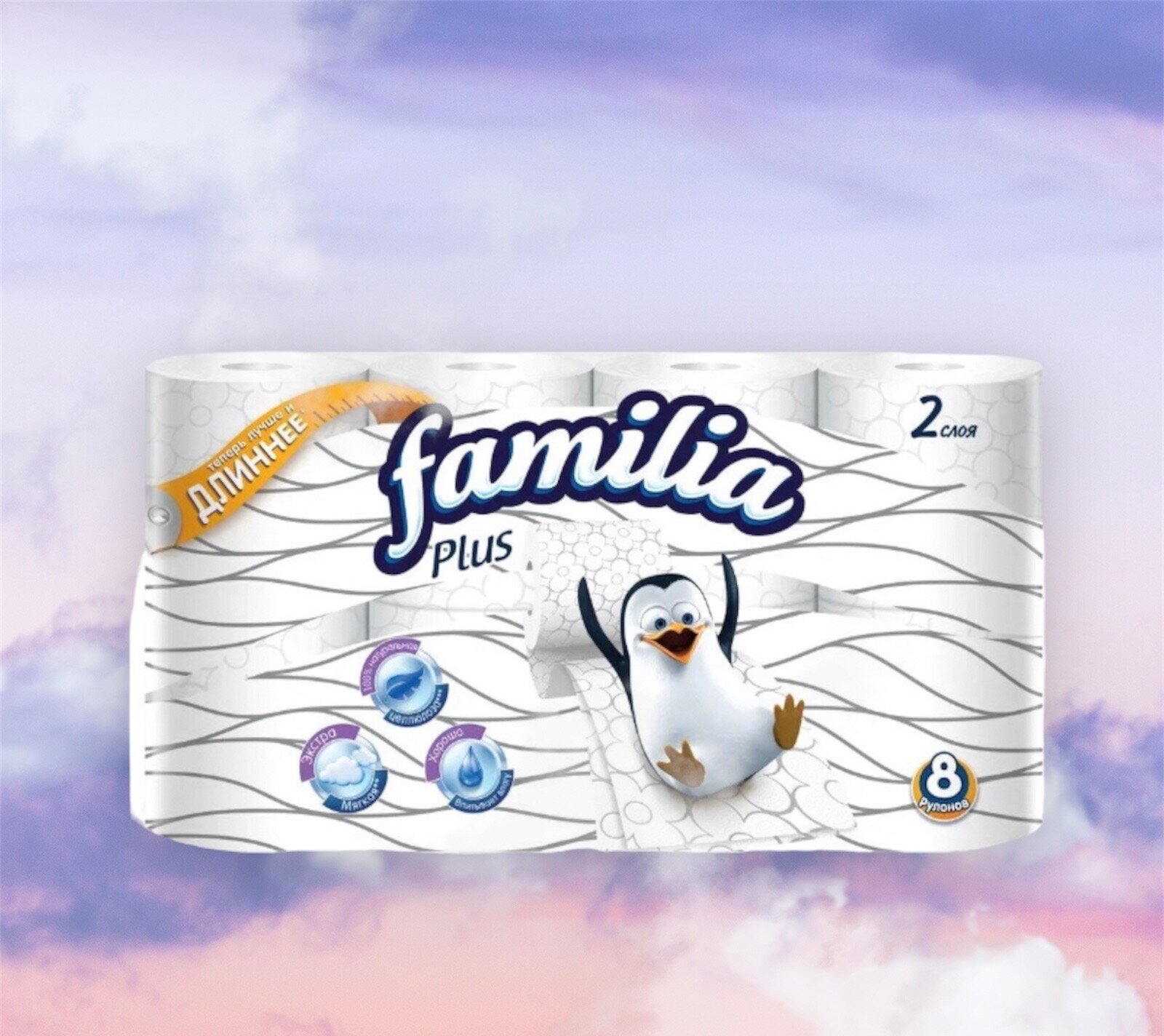 Туалетная бумага Familia Plus, белая, 2 слоя, 8 рулонов