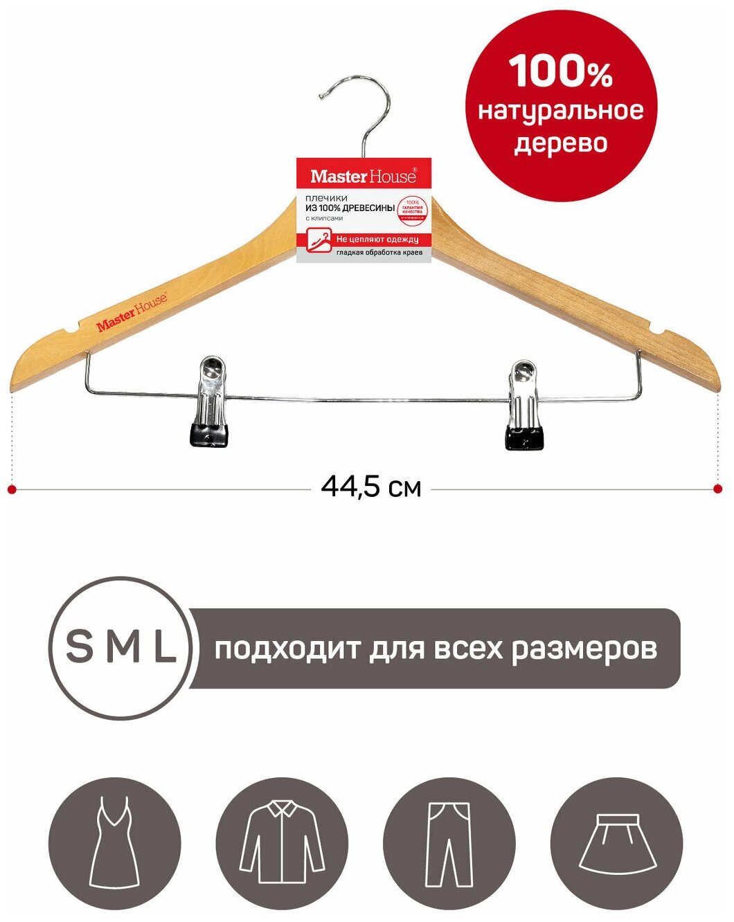 Вешалка-плечики 44,5см, дерево с клипсами Сандра арт.60363 Master House (арт. 636935)