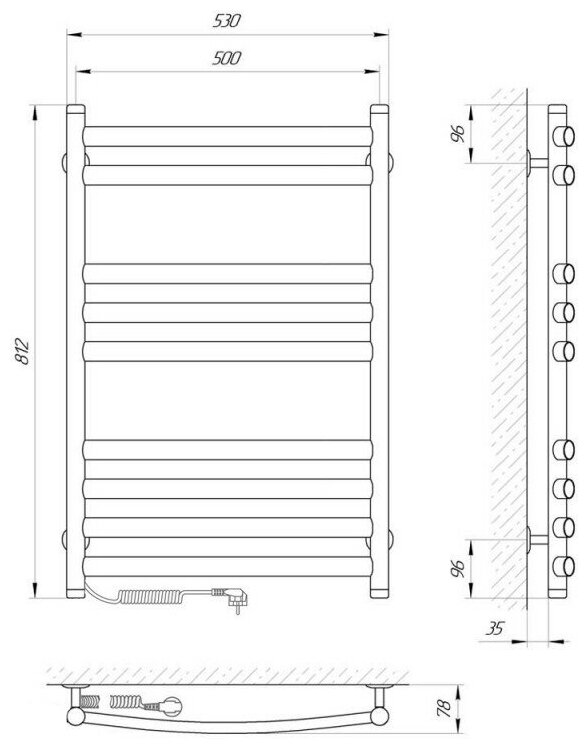 | Плюсы: | Красивый, хорошо греет, удобно вешать полотенца |