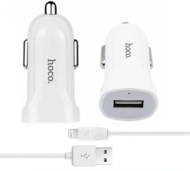Автомобильное зарядное устройство (АЗУ) Hoco Z2 (USB) + кабель Lightning, 1.5 А, белый