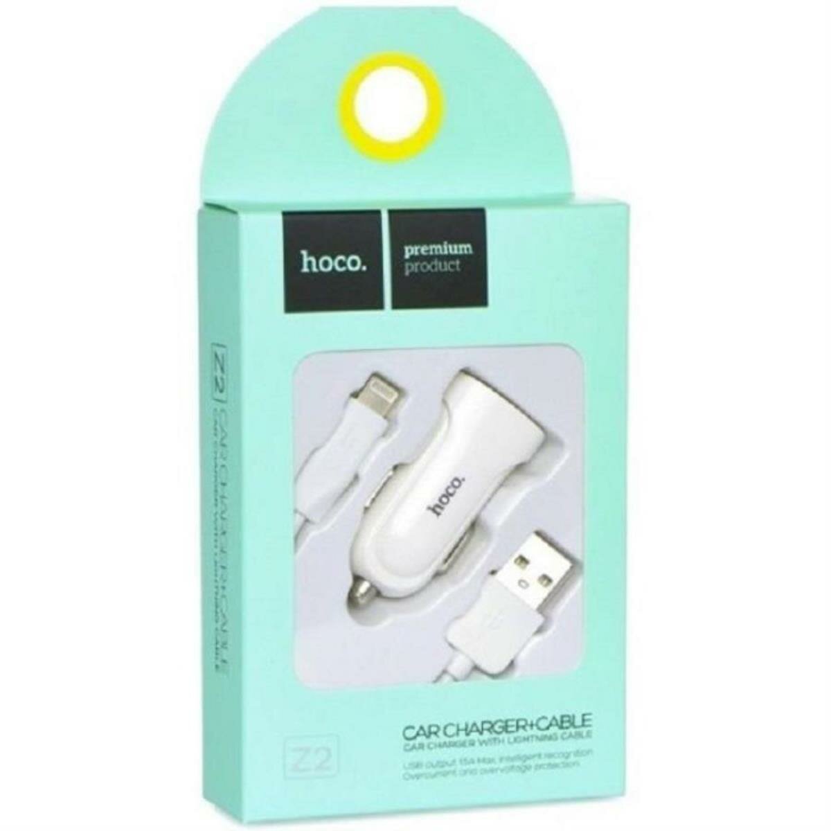 Купить Автомобильное зарядное устройство Hoco Z2 + кабель Lightning, белый