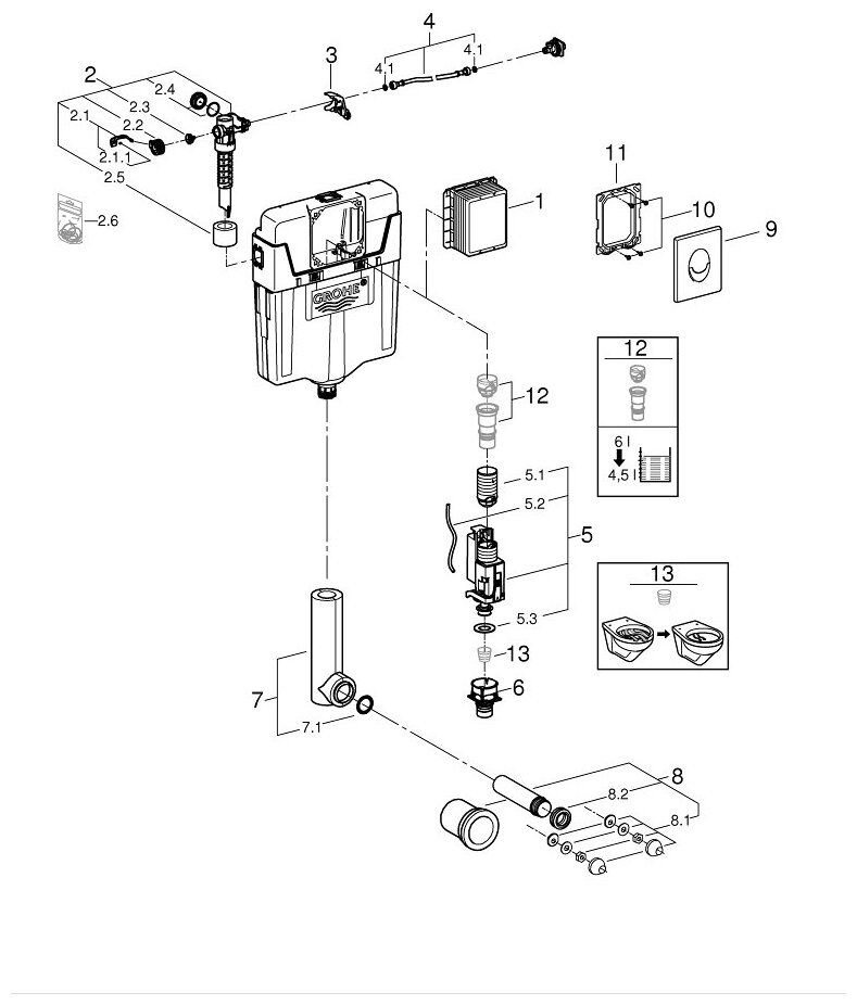 Смывной бачок скрытого монтажа для унитаза GROHE GD2 с панелью смыва (3 режима) (38895000)