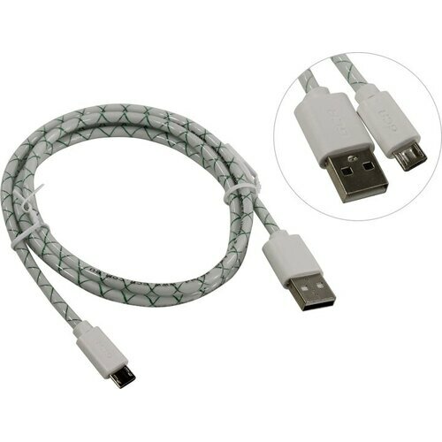 Greenconnect Кабель 2A 1.0m USB 2.0, AM/microB 5pin, бело-зеленый, белые коннекторы, 28/24 AWG, поддержка функции быстрой зарядки, GCR-UA9MCB3-BD-1.0m, морозостойкий. Greenconnect USB 2.0 Type-AM - microUSB 2.0 (m) 1м (GCR-UA9MCB3-BD-1.0m)
