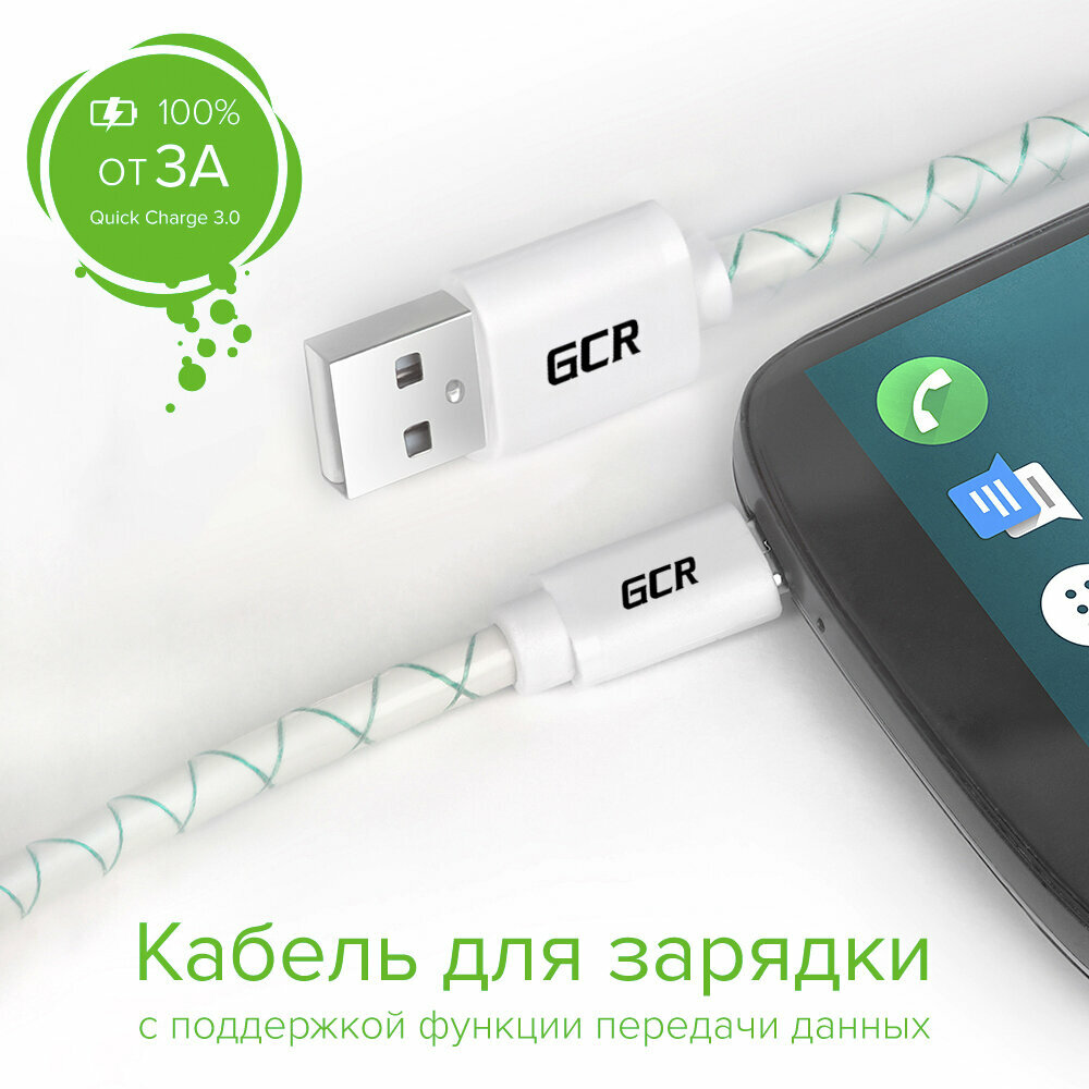 Купить Кабель USB micro GCR 3A 1 метр бело-зеленый