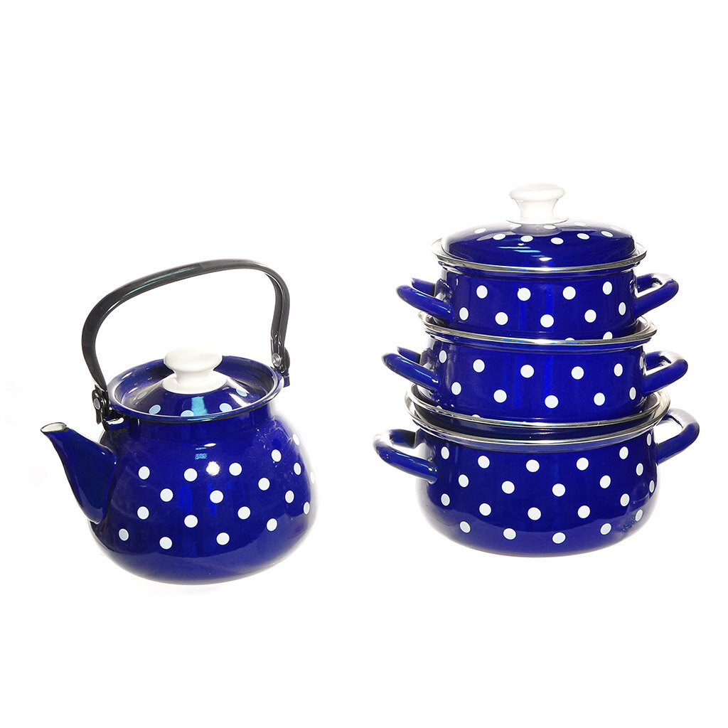 Керченская эмаль Набор кастрюль «Моника», 3 предмета: 1,5 л, 2 л, 3 л, эмалированные крышки, индукция, цвет красный