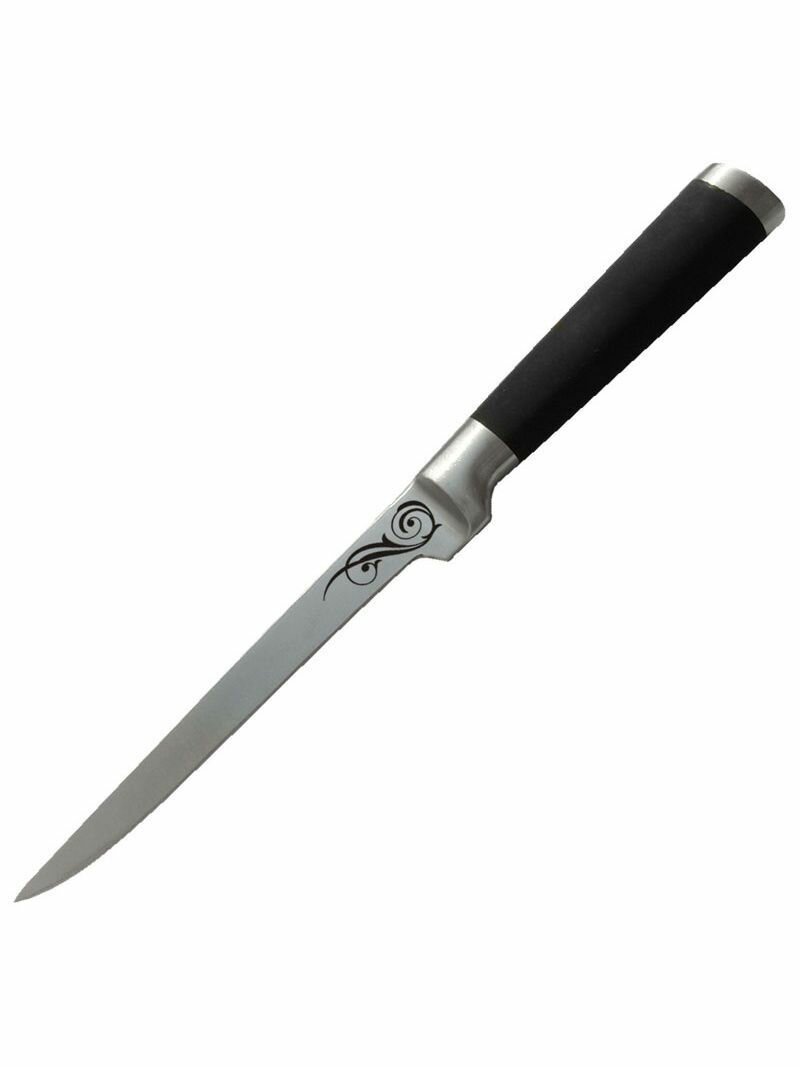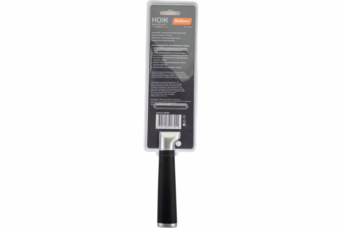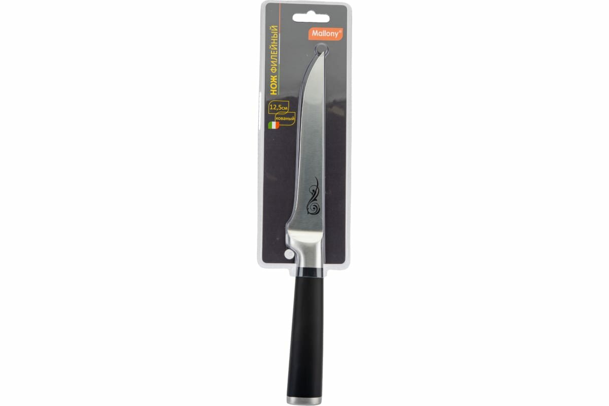 Нож филейный (лезвие 12,5см) ручка прорезин., кованый с рис. MAL-04RS Mallony BL 985364
