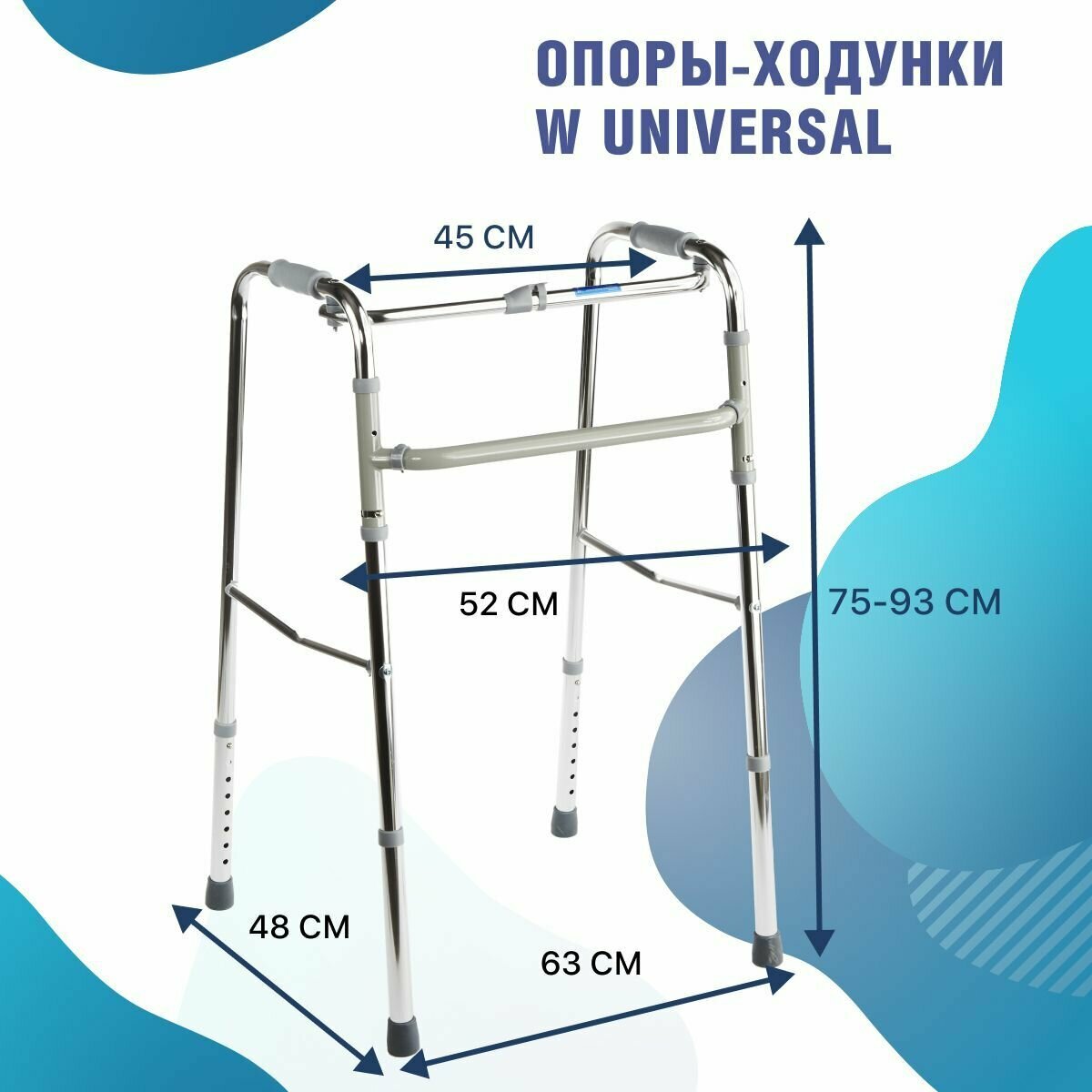 Купить Универсальные ходунки складные W Universal для взрослых, пожилых и инвалидов. Регулировка высоты под рост: 160-180 см. (шагающие/нешагающие)