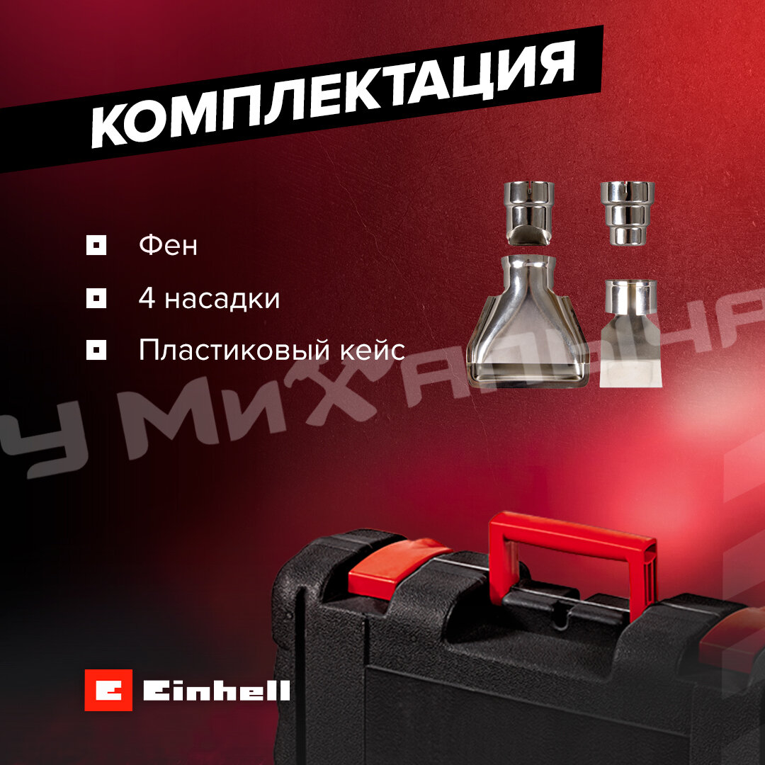 Строительный фен Einhell TE-HA 2000 E Case, 2000 Вт красный